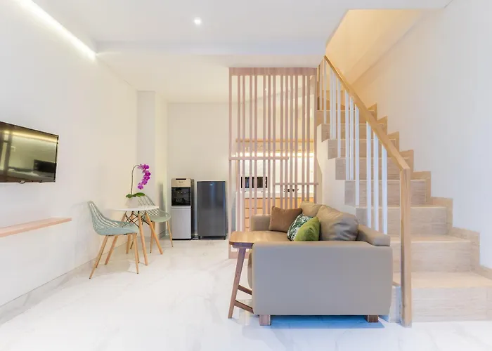Wenn Sie einen frühen Flug aus Kerobokan haben, liegt das 50 m^2 große Ellavie Aparthouse Kerobokan 15 km vom Flughafen Ngurah Rai entfernt. Dieses Apartment bietet Ausblicke auf den Garten.
